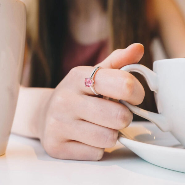 Pink Adjustable Crystal Ring Created with Zircondia Crystals