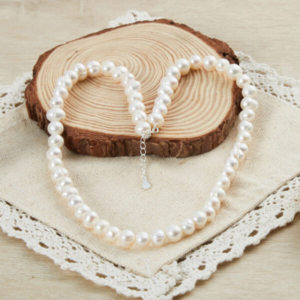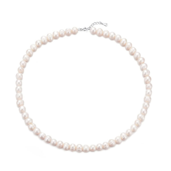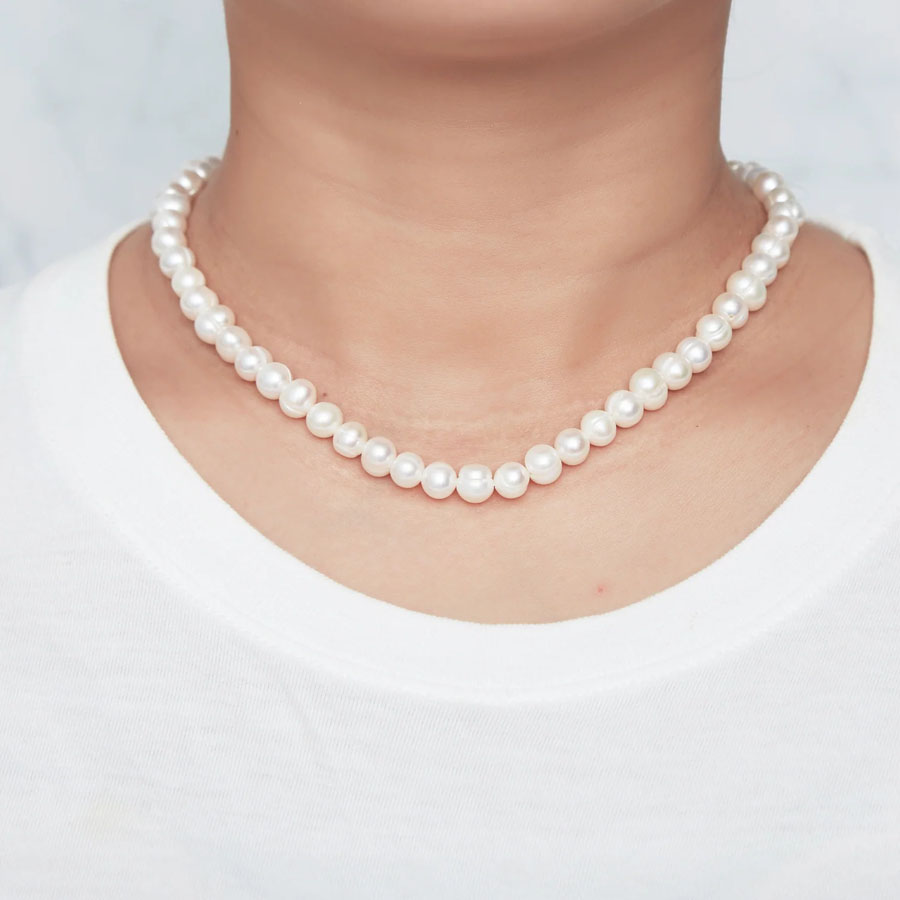 Sterling Silver White Freshwater Pearl Strand Choker Necklace